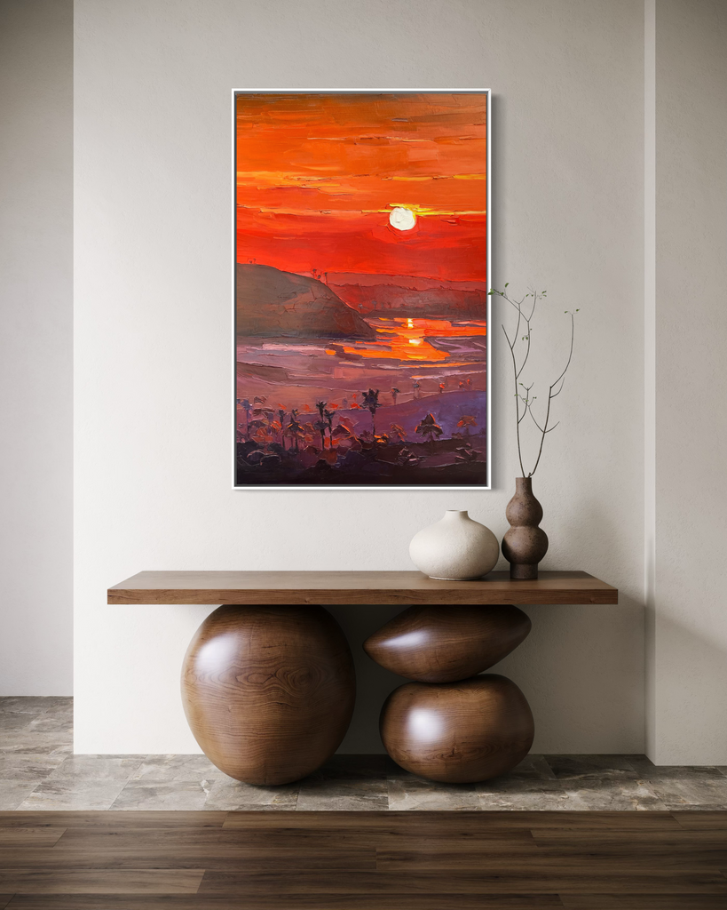 24” x 36” Original oil on canvas framed in a white modern floater frame